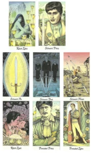Ich persönlich finde interessant, dass in dieser Legung ausschließlich Karten der Kleinen Arkana liegen. (Davon 4 Schwerter, 2 Kelche und 2 Pentakel) für mich heißt, dass, das in dem kommenden Zeitraum vieles überdacht werden muss, was man geplant hatte, Emotion und Materielles ist dabei hilfreich aber nicht sonderlich wichtig.