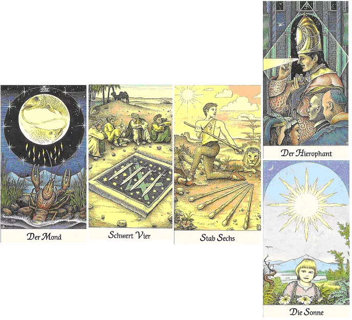 Traditionell soll diese Karte ein Hinweis auf Krankheiten sein, die man durchgestanden hat. Für mich steht sie allerdings auf dieser Position für ein geborgenes und verständnisvolles Umfeld, dass einem zugehört hat und in dem man gefördert wurde.