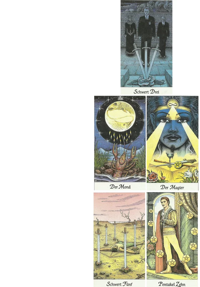 Diese Karte stellt einen Verlust dar, eine Situation, die ich aus meiner gewohnten Bahn werfen wird. Sie warnt mich davor, zu lange in einem gewissen emotionalen Zustand zu bleiben und ermutigt trotz der dunklen Darstellung weiterhin nach vorne zu blicken. es kommen auch wieder bessere Zeiten.